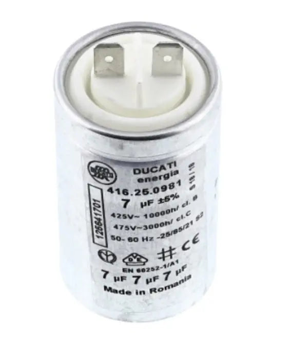 Note:Condensateur métallique Cust à vue S2 - 7mf 475V Faston Simple Attaque rapide Dim. 35x60 mm