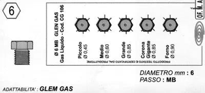 Note:Injecteurs de gaz Bonelli au gaz / col de méthane / taille 6 Mo