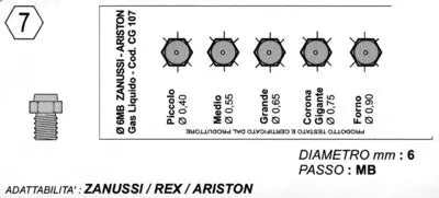 Note:Injecteurs de gaz Bonelli au gaz / col de méthane / taille 6 Mo