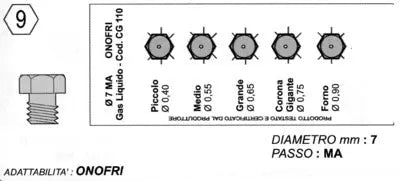 Note:Injecteurs de gaz bonelli au gaz / col de méthane / taille 7 mA