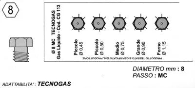Note:Injecteurs de gaz bonaux à gaz Méthane / méthane Pass / Taille 8 MC
